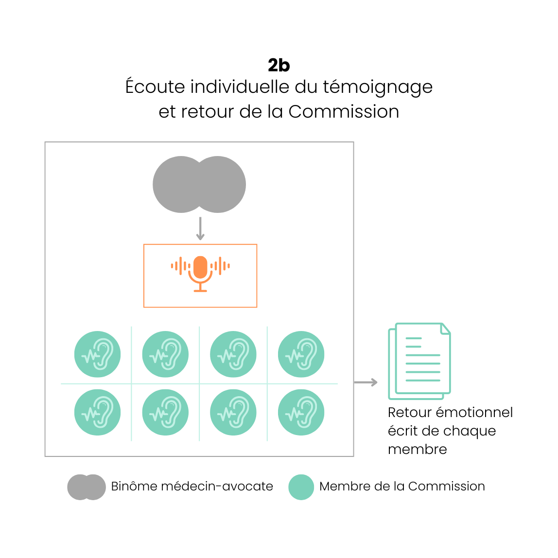 L’écoute du témoignage se fait individuellement, sans interaction entre les membres de la Commission.